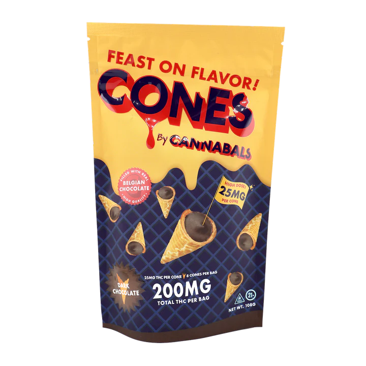 Unwind with intention and elevate your edible experience through Cannabals Dark Chocolate Cones, a unique and sophisticated take on cannabis-infused confections. Each pack contains 8 expertly crafted cones, each infused with 25mg of THC, offering a total of 200mg per package. Designed for users who value both flavor and function, these cones provide a premium edible experience that is as enjoyable as it is reliable.